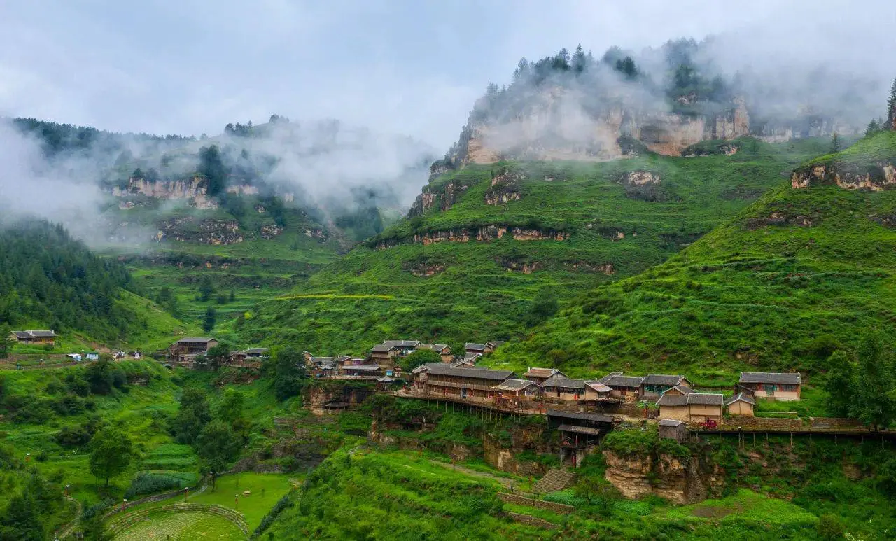 明清年间建成的悬空村,坐落在海拔2300米的险峻悬崖之上,村落依山傍势而筑,以木柱支撑房屋,以栈道作为街道。这个村落是我国首批被认定为历史文化名村的村庄之一,至今仍有超过十户人家在此居住。