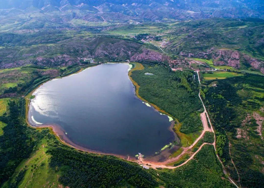 图为芦芽山天池航拍