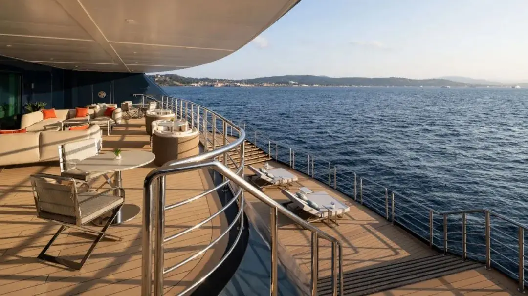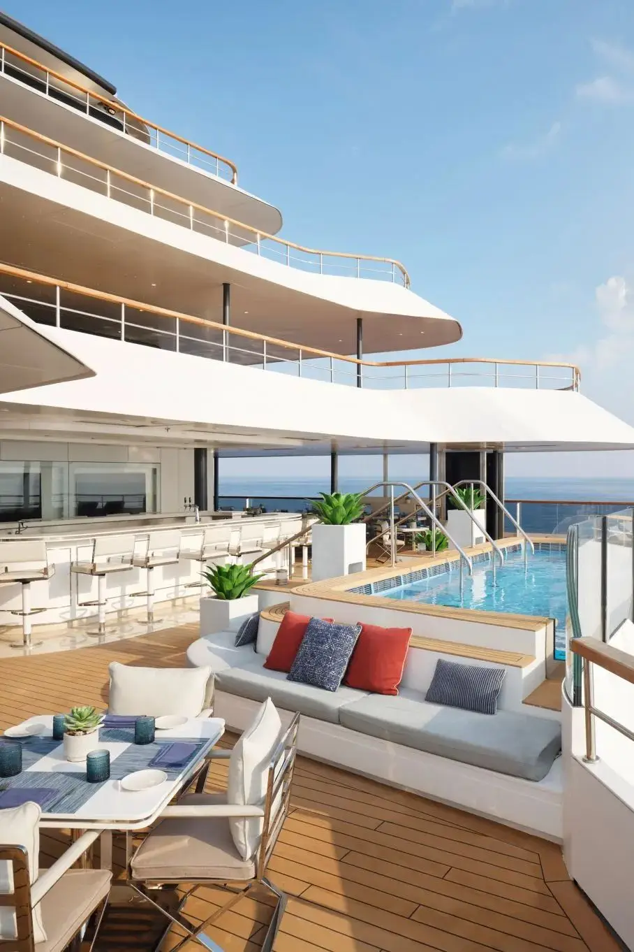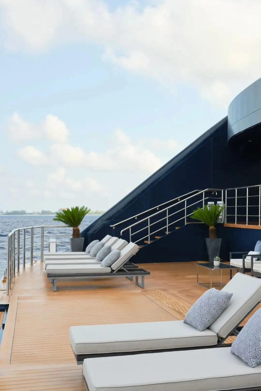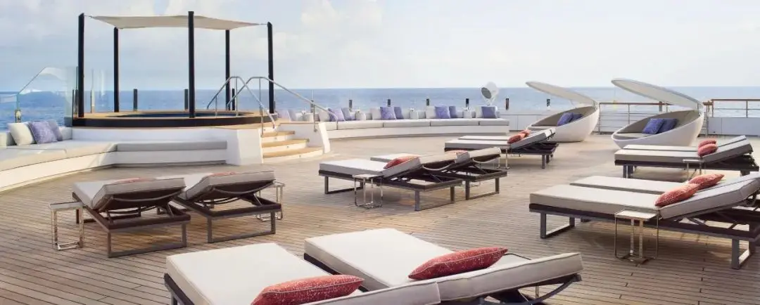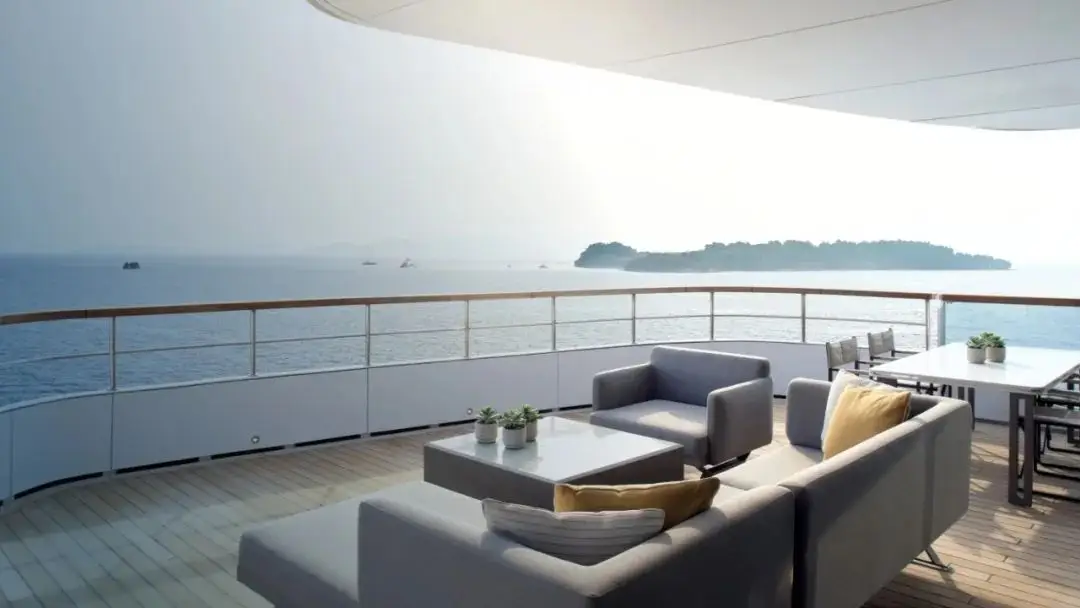 冥想露台位于船舶顶层甲板,四周环绕着360度的全景视野,特别配备了雪茄吧以及星空观测台。