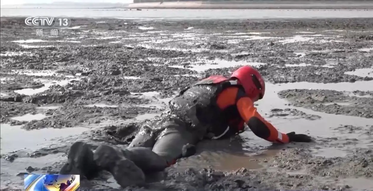 消防员进一步说明,若游客不慎在滩涂上跌倒,应立即尽量增大身体与泥泞的接触范围,并伸展双臂以分散自身重量,随后尽量转动身体,以匍匐的姿态向岸边挪动。在此过程中,同行者也可以借助木棍、竹竿等可拉扯的物品,通过施以援手,协助被困者安全登陆岸边。