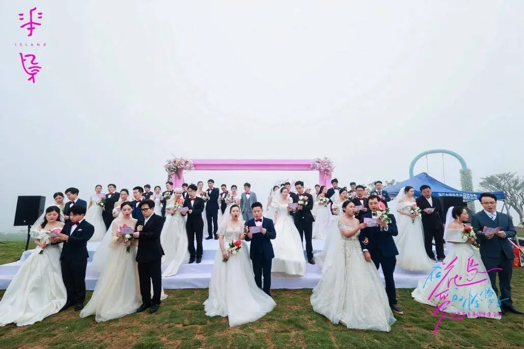 在活动现场,“我们结为连理”的欢呼声响彻山海之间,再次高声传达着爱意。25对新人伴随着潮声庄严宣誓。以山海为证,以花鸟为伴,他们的誓言感动了在场的每一个人。