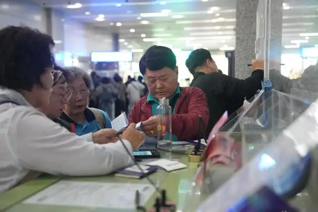 5月20日,张家界荷花国际机场迎来了韩国游客,他们正忙着填写入境所需的信息。新华社的摄影师薛宇舸记录下了这一幕。