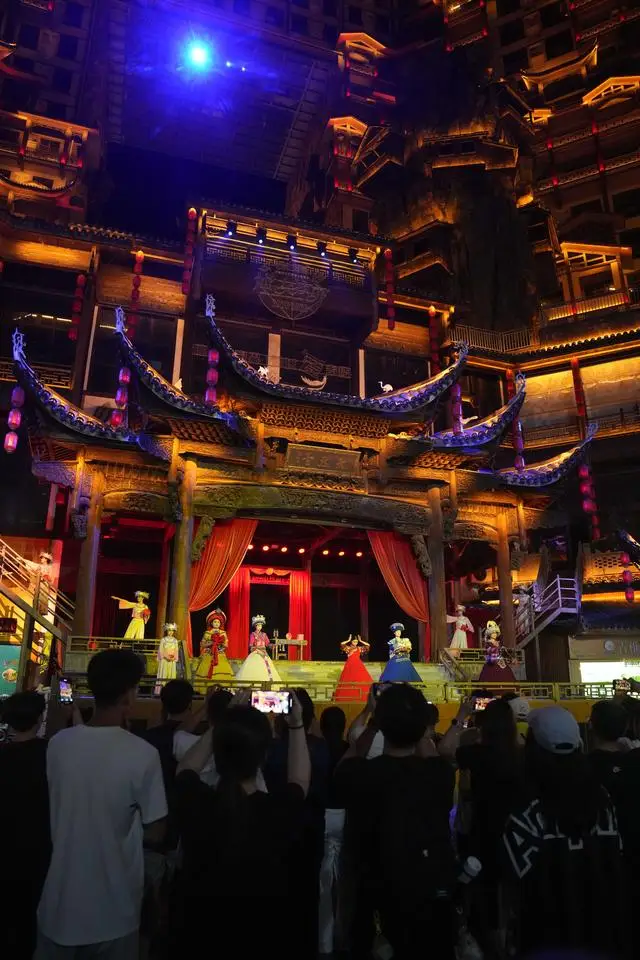 20日五月,众多游客齐聚张家界市七十二奇楼景区,现场观摩了一场精彩的演出。新华社摄影记者薛宇舸捕捉了这一幕。