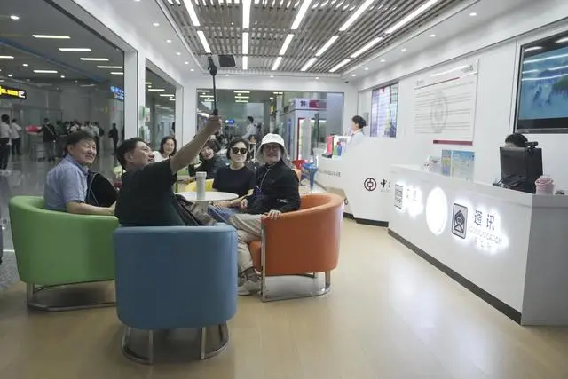 5月20日,一群韩国游客于张家界荷花国际机场的境外来宾服务中心留下了珍贵的合影。新华社摄影记者薛宇舸记录下了这一幕。