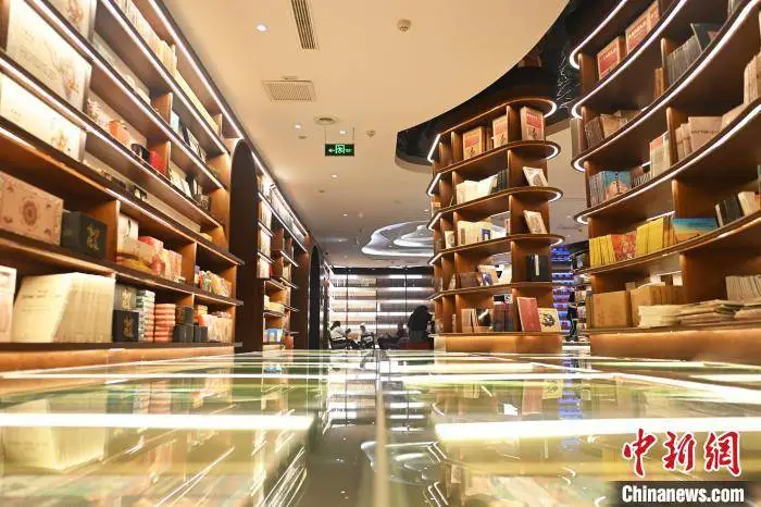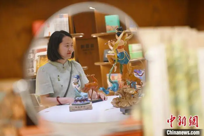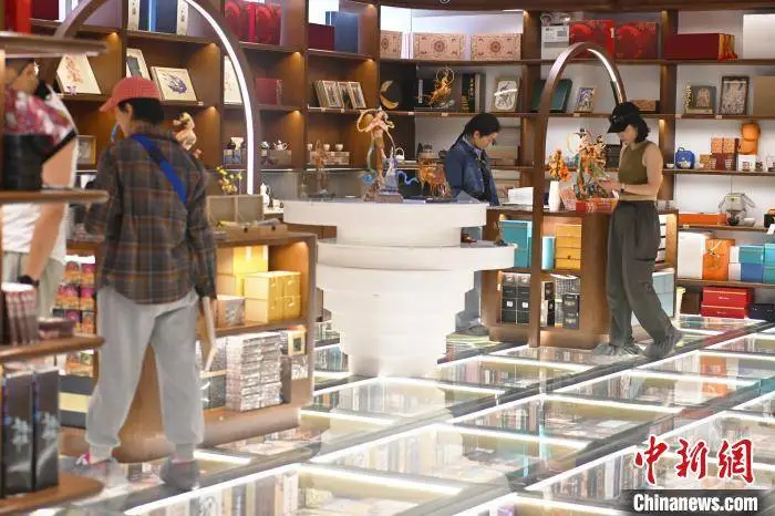 5月20日,甘肃省敦煌市敦煌书局内,游人参观敦煌文创产品。中新社记者 李亚龙 摄