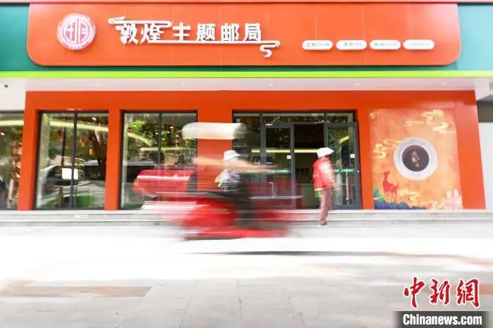 5月22日,众多游客漫步于甘肃省敦煌市的敦煌飞天主题邮局。中新社的摄影记者李亚龙捕捉了这一画面。