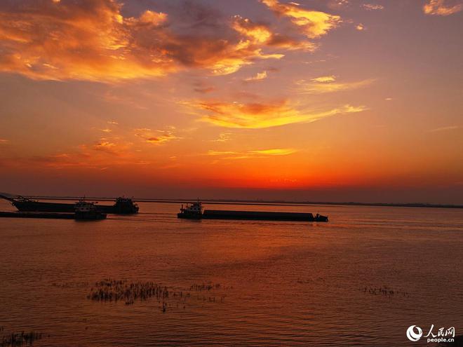 晚霞映洞庭。人民网记者 刘宾摄