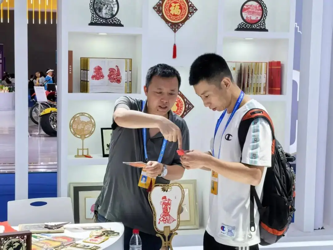 在展会现场,非遗技艺同样吸引了众多观众。武胜剪纸省级传承人谭志君的摊位前,红纸上剪刀舞动,犹如在纸上自由穿梭,瞬间,“沿口古镇”的景象便栩栩如生地呈现出来。重庆游客董杰现场定制的“洪崖洞与沿口古镇”同框剪纸作品,他赞叹不已:“将重庆与广安的文旅地标巧妙融合,这份礼物既富有创意又充满意义。”