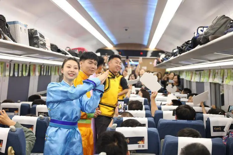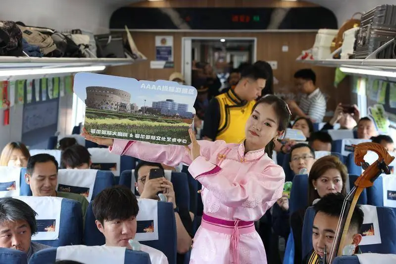 5月23日,在驶向西安的D177次列车中,一场以“北疆文化神州之旅——邂逅瑰丽的康巴什,感受诗意与遥远”为主题的北疆文化旅游宣传活动正在进行。此举由中国铁路西安局有限公司(以下简称西安铁路局)与鄂尔多斯市康巴什区委宣传部共同发起,旨在推动跨区域文化旅游宣传,促进区域文化旅游的深度融合,是该公司助力区域文化旅游发展的又一创新举措。