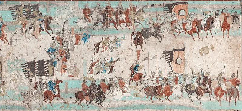 敦煌莫高窟的壁画在全球范围内享有盛名,此次展览当然也包含了这些杰作。在这里,观众们将有机会一睹《张议潮统军出行图》的风采。