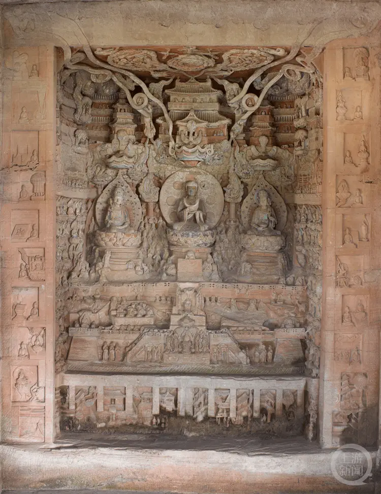 在整窟复制的搬迁至现场展示环节,那座曾受到梁思成高度赞誉的石窟瑰宝——大足北山无量寿经变相龛,还有宝顶山小佛湾的毗卢庵,都将与观众朋友们见面。