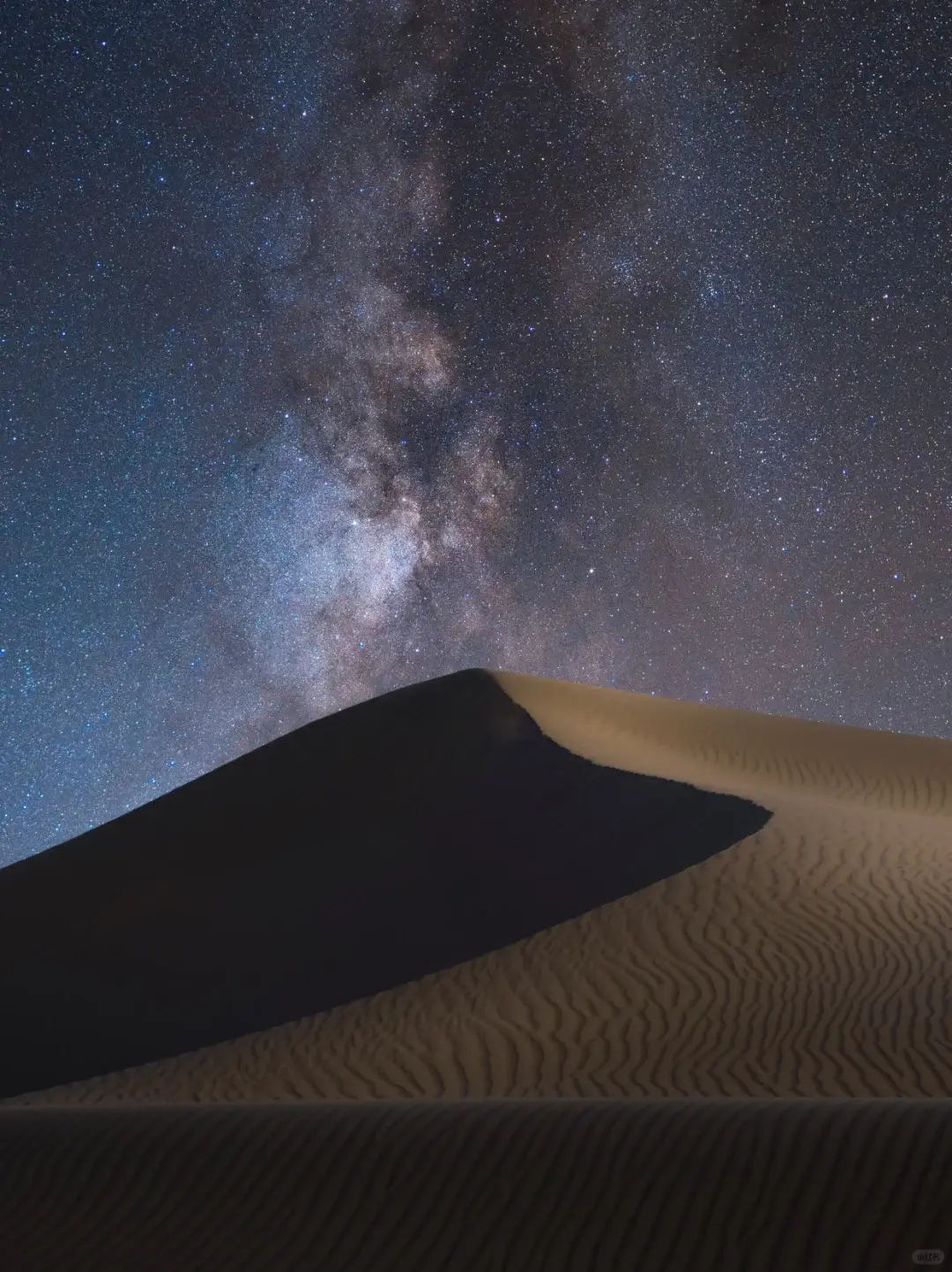高速列车驰骋向新城区,抵达时沙海之中仰望星辰。夜幕低垂,沙海静谧无声,无瑕的苍穹将银河映照得格外分明,在一片寂静之中,浩瀚的宇宙星河宛如触手可及。