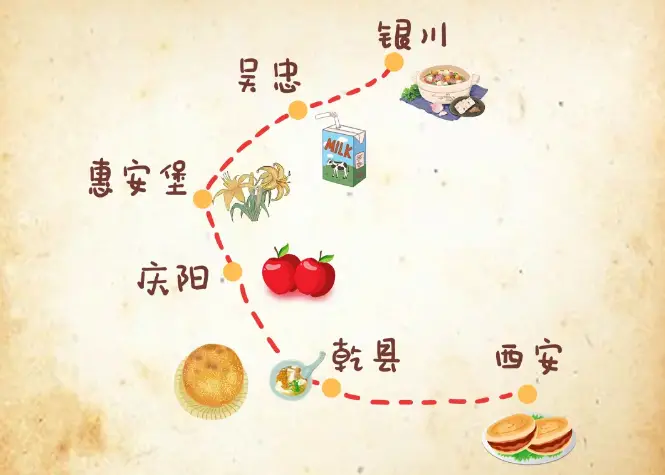 途经银川市、吴忠市、甘肃省庆阳市、陕西省咸阳市、西安市。