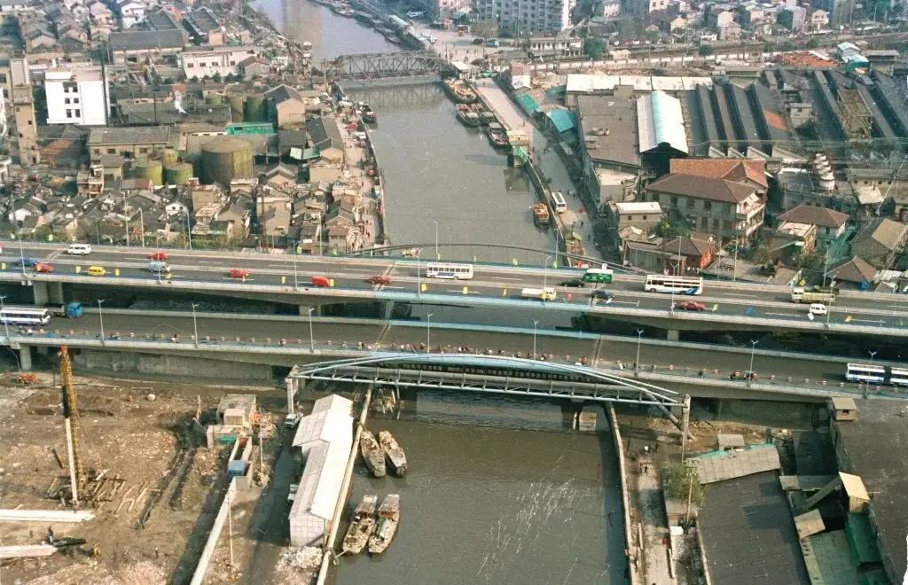 华东师范大学求学期间,我常途径的地点。中山北路至凯旋路桥河段,那里内环高架路已建成并投入使用(照片拍摄于1994年)。