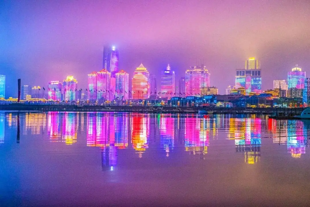 当暮色浸染浮山湾,青岛的科技浪漫在霓虹中绽放。
