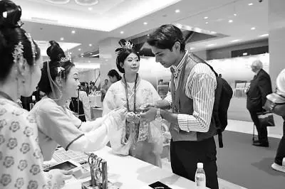 5月30日,参会嘉宾在开幕式后体验敦煌文化项目。新华社发