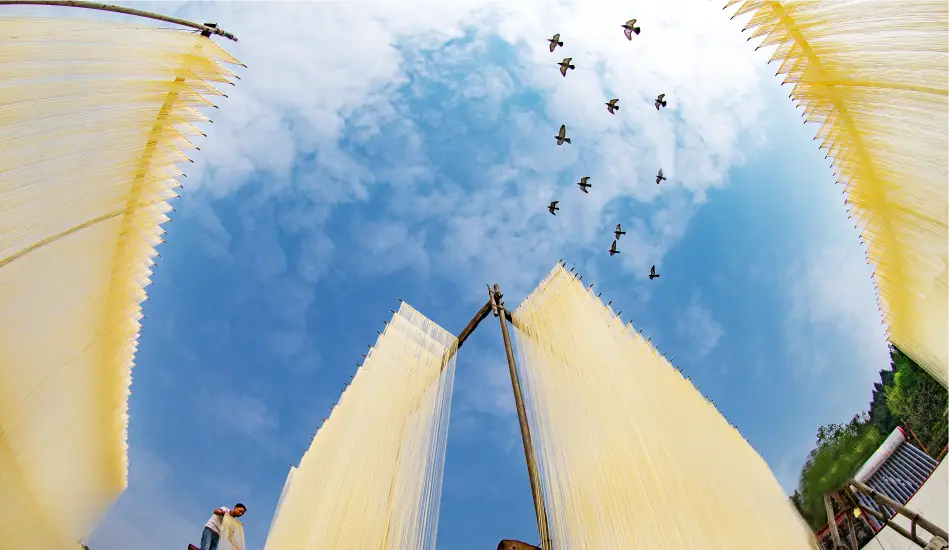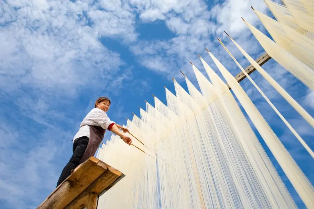 制作出细若银丝的空心面条实属不易,需经过18道主要工序和72道细致工序,并且经过五次发酵过程。在每年的10月至次年的5月,你都能目睹全村晾晒面条的壮观景象。