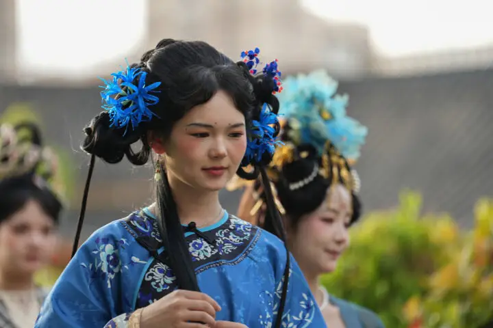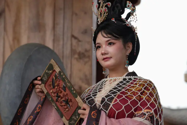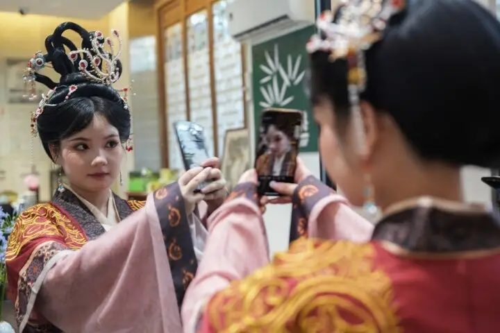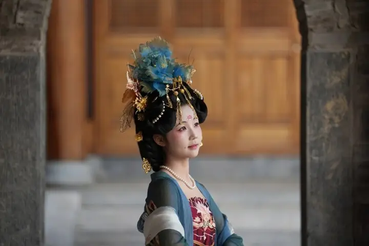 2025年6月11日,一名游客在贵州省铜仁市碧江区中南门历史文化旅游区照旅拍。 申逸恺 摄