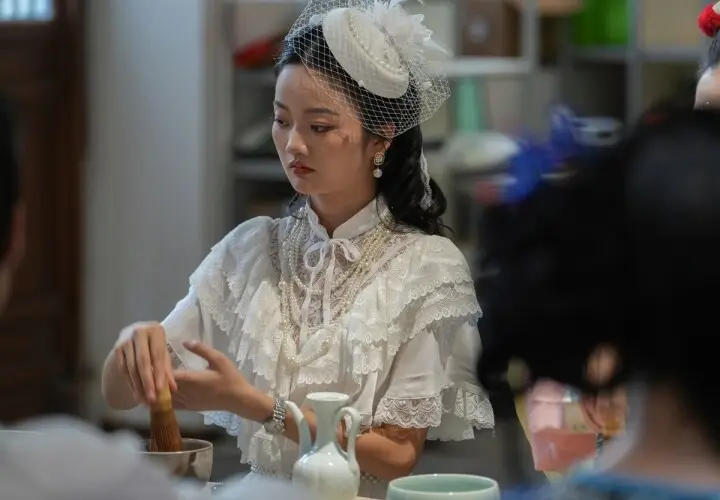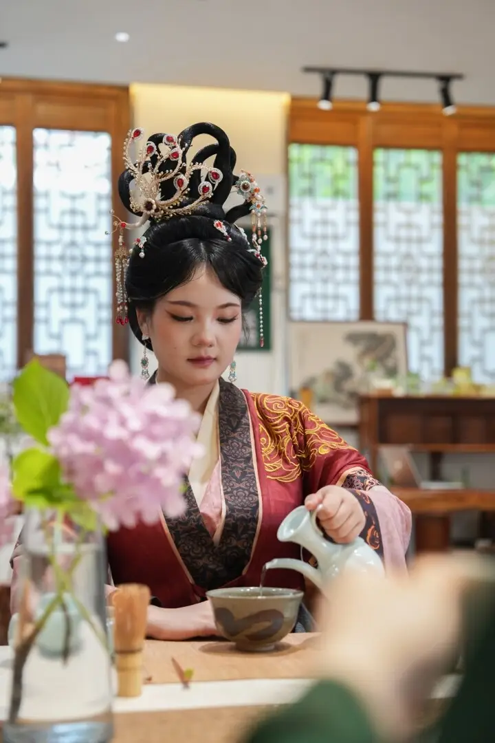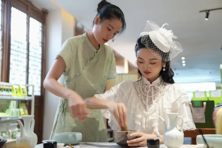 2025年6月11日,位于贵州省铜仁市碧江区的中南门历史文化旅游区内,一位名叫“抹香集”的茶艺师正在向游客们展示如何制作抹茶饮品的技艺。这一幕由摄影师申逸恺记录下来。