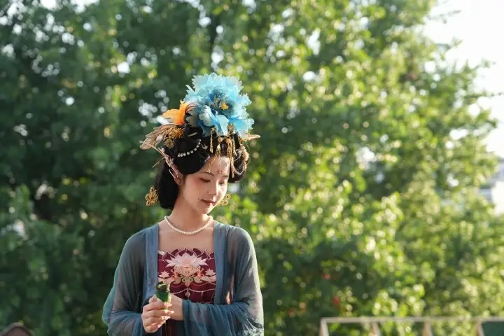 2025年6月11日,一名游客在贵州省铜仁市碧江区“抹香集”旅拍。申逸恺 摄