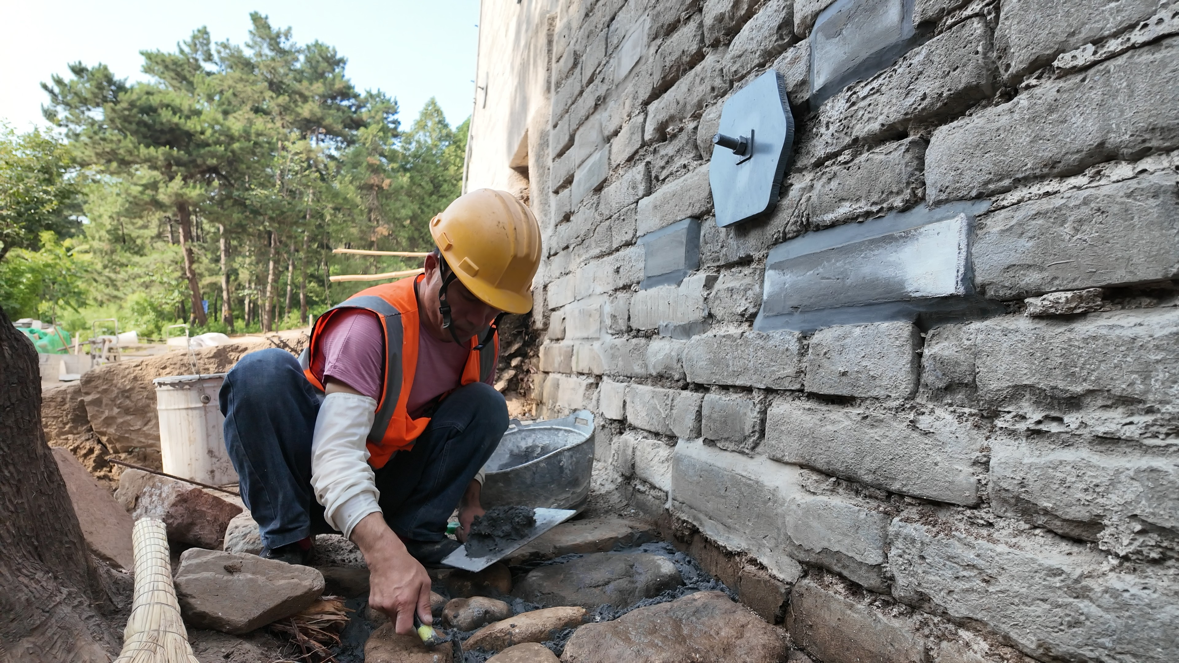 文物修复专家伊文龙指出,长陵的文物建筑属于明代官式风格,其修缮的标准和技艺要求相当严格;以我们正在进行的墙体排水系统修复为例,单是砌好一块砖,就需要经过找中、找方、抄平、拴线、样趟等共计14道工序。伊文龙指出,在进行文物建筑物的修复工作时,首要任务是仔细调查建筑物的受损状况,并据此拟定恰当的修复计划。在施工过程中,我们必须坚持“保持原有形态、结构、材料和工艺”的原则,以确保文物能够恢复到健康和稳定的状态。