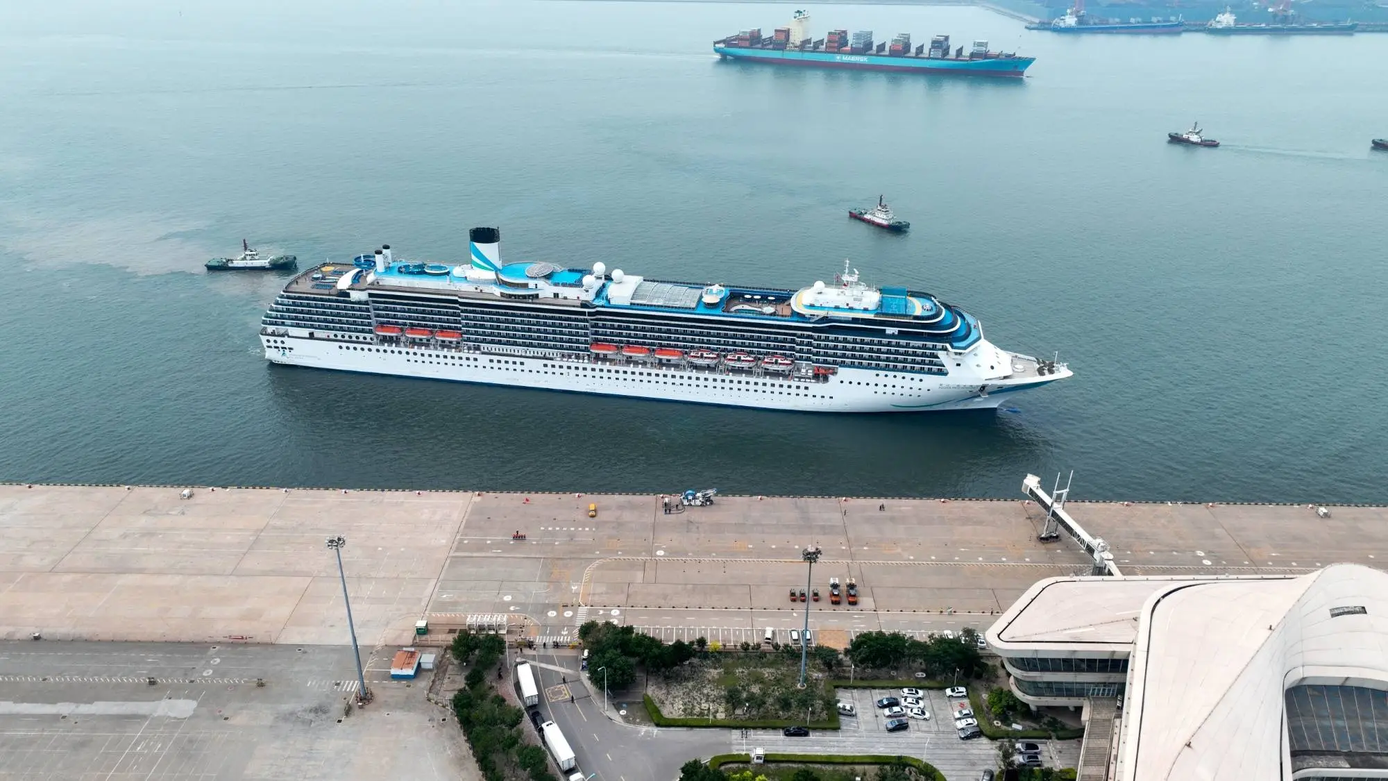 爱达·地中海号靠泊天津国际邮轮母港(央广网发 高亚冰 摄)