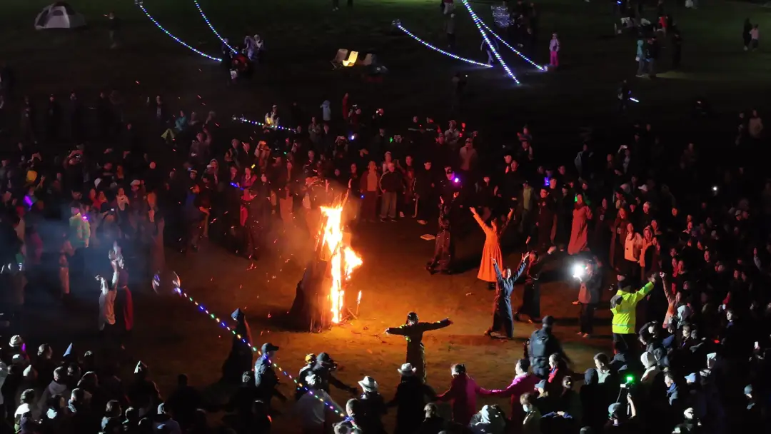 夜色渐浓,一记高昂的号角响彻天空,标志着“歌游内蒙古·伊敏河之夏”文艺汇演的盛大开启。舞台上,马头琴的旋律悠扬动听,蒙古族的长调歌声高亢嘹亮,现代舞者们充满活力的舞姿轮番登台,灯光与音乐的融合营造出一种独特的氛围,将草原的豪迈与柔情完美呈现。文艺汇演落下帷幕,紧接着是一场热闹非凡的篝火狂欢夜。熊熊燃烧的篝火照亮了整个营地,人们手牵手围坐在火堆旁,欢歌笑语,舞蹈翩跹,欢乐的气氛达到了高潮。