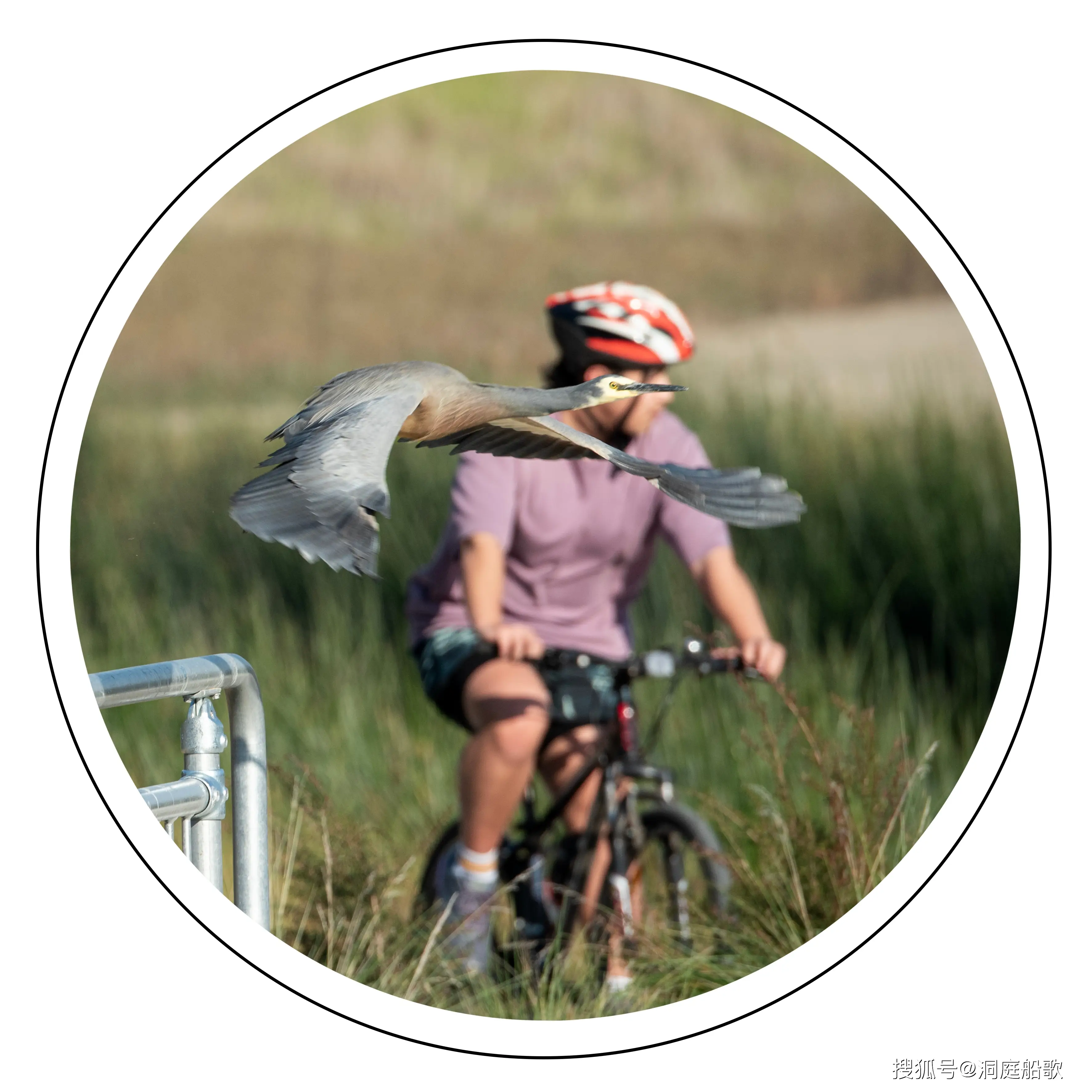 湿地白脸鹭惊鸿掠过骑行者鼻尖。