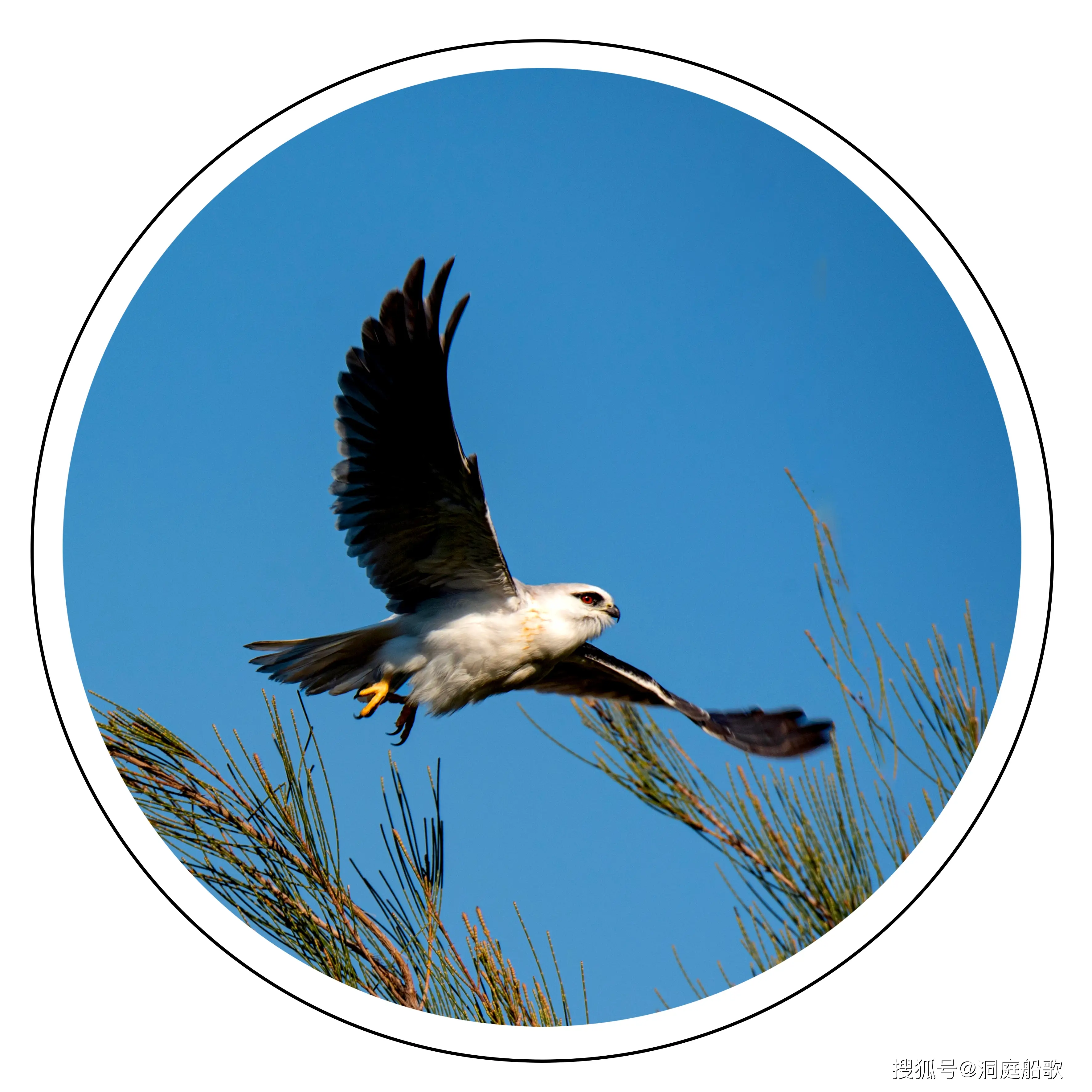 沿着堤岸行走之际,我目睹了湿地边缘一簇树枝上停歇着一只洁白的鸟儿。我踩着被露水浸湿的草地,小心翼翼地绕道而行,直至抵达那鸟儿栖息的树木旁。凝神细观,我发现其眼中透露出猩红色,爪子锋利无比,喙部带有钩状,据此我迅速判断出这是一只猛禽中的隼类。经过查询,得知此鸟名为黑翅鸢。