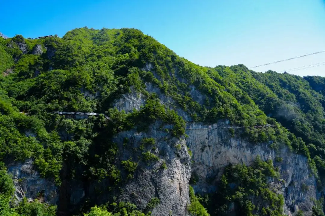 一线天景区:两侧峭壁紧挨,仅能允许一人侧身通行,抬头仰望,只见一线天光,显得既神秘又雄伟。
