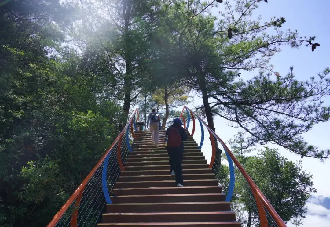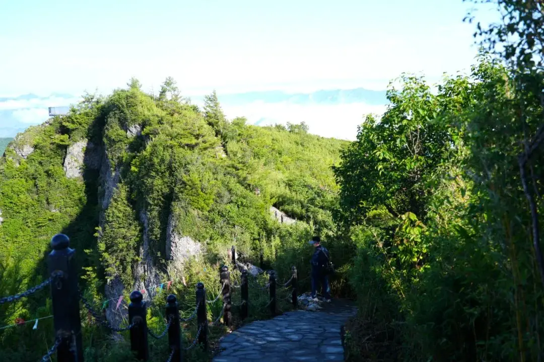 漫步在这条路径上,无疑是一次视觉与听觉的双重盛宴,脚下是布满青苔的阶梯,曲折而上,耳边是蝉鸣鸟语与松涛共鸣,眼前是云雾翻腾、奇峰林立,再往远处看,高山草甸宛如翠绿的绒毯铺陈至天际,其间点缀着各式野花……每一个转角都隐藏着令人屏息的自然美景。