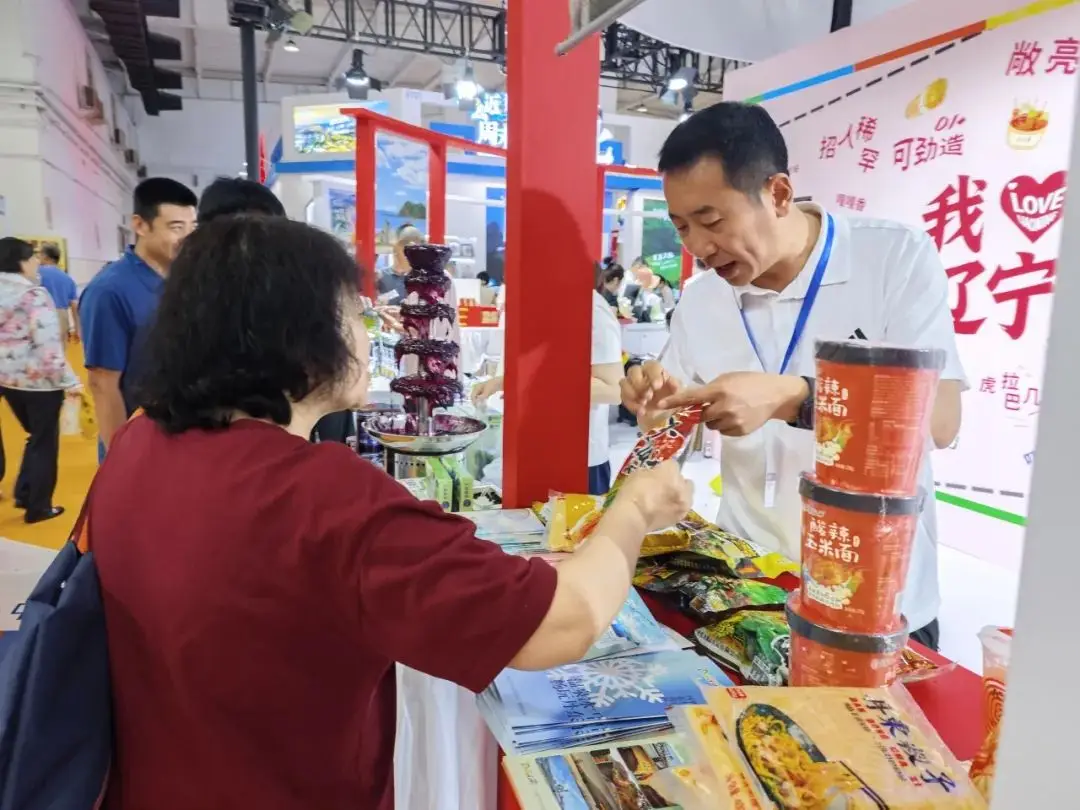 在本次博览会的主展馆内,丹东展区秉持“非遗活化、文创赋能、物产引流、宣传激活”的核心理念,精心构建了一个全方位的文旅宣传展示体系。以“1950”品牌系列文创产品作为核心展示内容,展览中包含了金属徽章、数字钥匙扣等共计16种59件文创产品,成功将历史文化的象征转化为流行的消费商品;而非遗类展品则以“戴家叉子”为典型,展示了传统手工艺与当代设计的巧妙融合。除此之外,将东港的干黄蚬子、凤城的蓝莓制品等特色农产品与“春夏秋冬”四季主题宣传册页、丹东手绘地图以及休闲地图相结合,打造出一种集视觉与味觉于一体的沉浸式感受。在展区推广方面,通过“舞台展示+节目互动+打卡吸引游客”等多种宣传手段,全面展示了丹东丰富的旅游资源和其独特的吸引力。