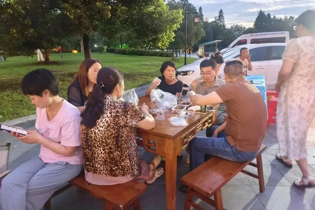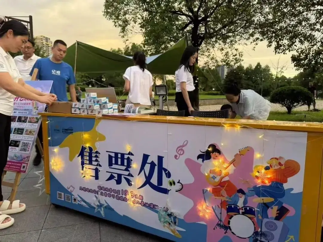 天公作美,连绵的雨势在一周的等待后终于停歇,为活动的顺利进行献上了晴朗的天气。活动现场,童趣横生的斑马线、温馨的落日灯、绚烂的五彩霓虹、梦幻的天幕帐篷,与湖光山色和悠扬的音符交织,共同营造出一片奇幻的空间。市民们沐浴在彩虹与晚霞的映照下,品尝着新鲜出炉的卤味,聆听着动感的音乐,在爵士乐的节奏中,尽情享受着夏夜的浪漫。