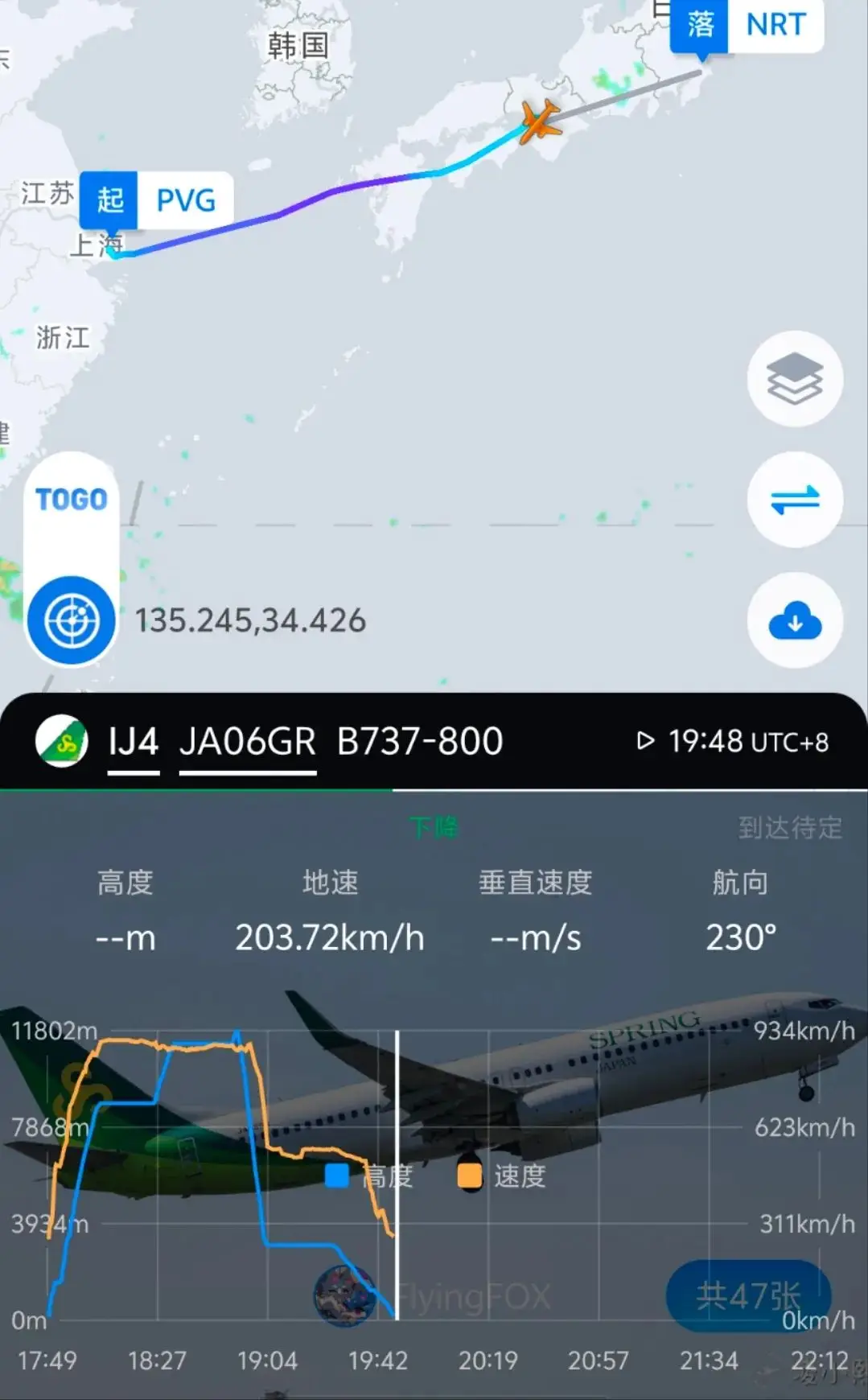 潇湘晨报讯,该航班当天17时49分从上海浦东顺利升空,原计划在当地时间21时47分抵达东京成田机场。然而,雷达监测显示,航班在18时53分左右,本应在超过1.1万米的高空飞行,却意外在短短十分钟内急剧下降至3200多米。最终,航班于19时50分安全降落。