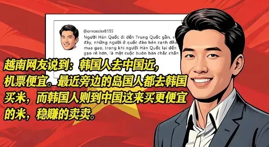 越南网民分享了自己的观点,他认为韩国与中国距离较近,前往那里的机票费用相当低廉。