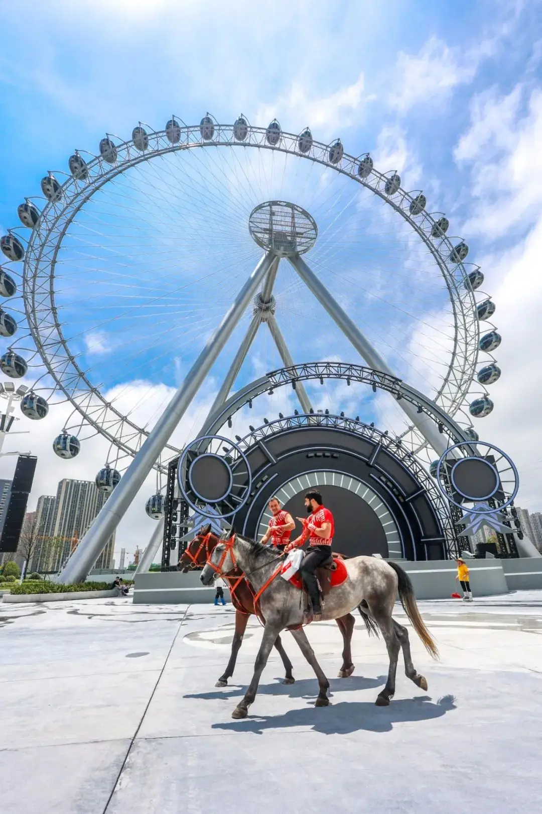 站在摩天轮之巅,眼前逐渐展开的是一幅“一厅、一城、一堤、一墙、一湖、一河、一海”的壮丽美景,其绮丽画卷缓缓铺陈。