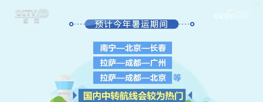 2025年的情况与往昔迥异,性价比更高的中转联程产品需求明显增长。特别是通过北京、成都、昆明、西安等关键枢纽城市进行中转的航班和联运线路,客流量显著增多。据预测,在2025年的暑运期间,南宁至北京再转至长春、拉萨至成都再转至广州、拉萨至成都再转至北京等国内中转航线,将会特别受欢迎。