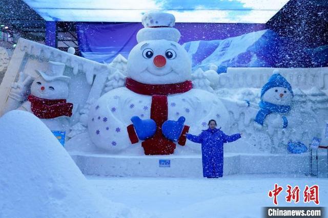 7月9日,在哈尔滨的太阳岛冰雪艺术馆,游客们纷纷与雪人合影留念。摄影师赵宇航捕捉了这一温馨时刻。