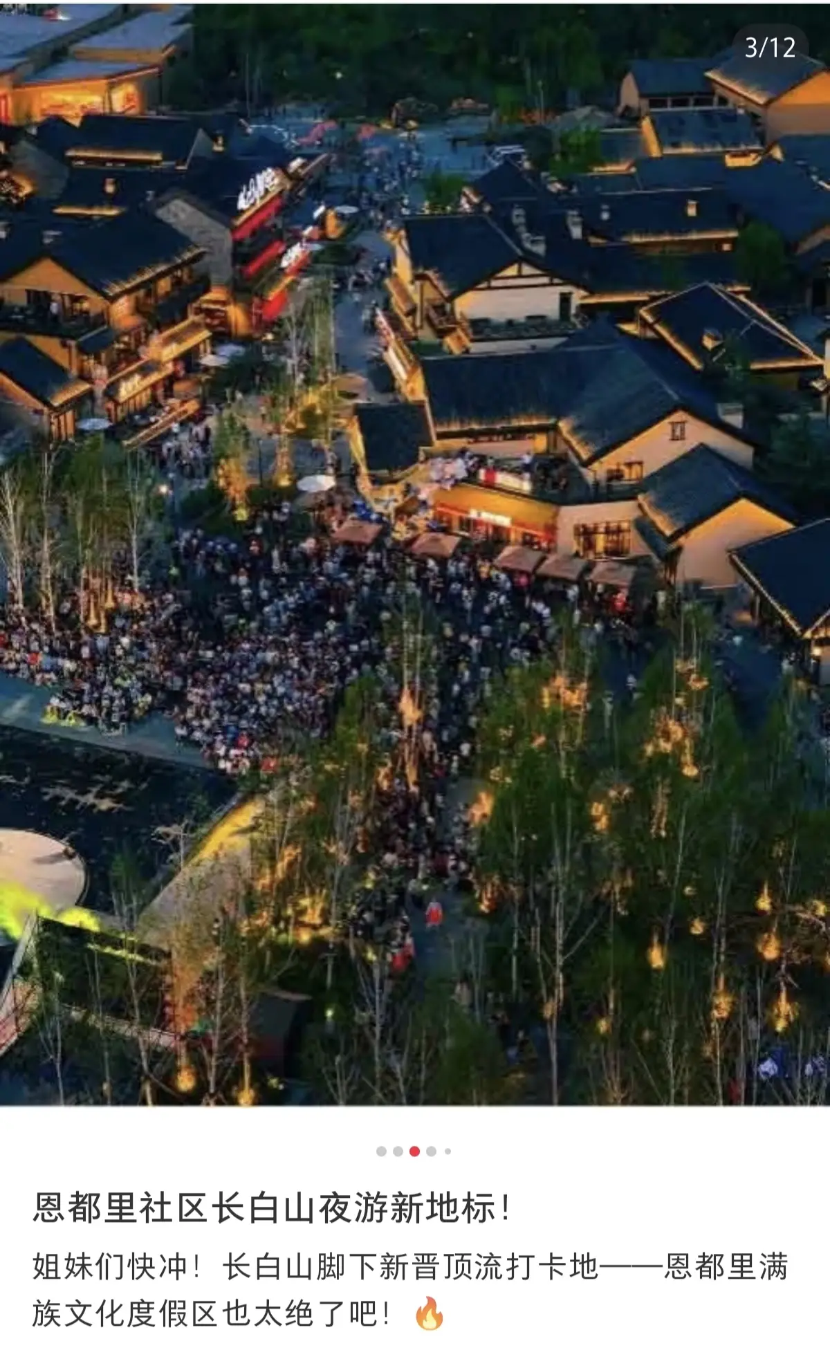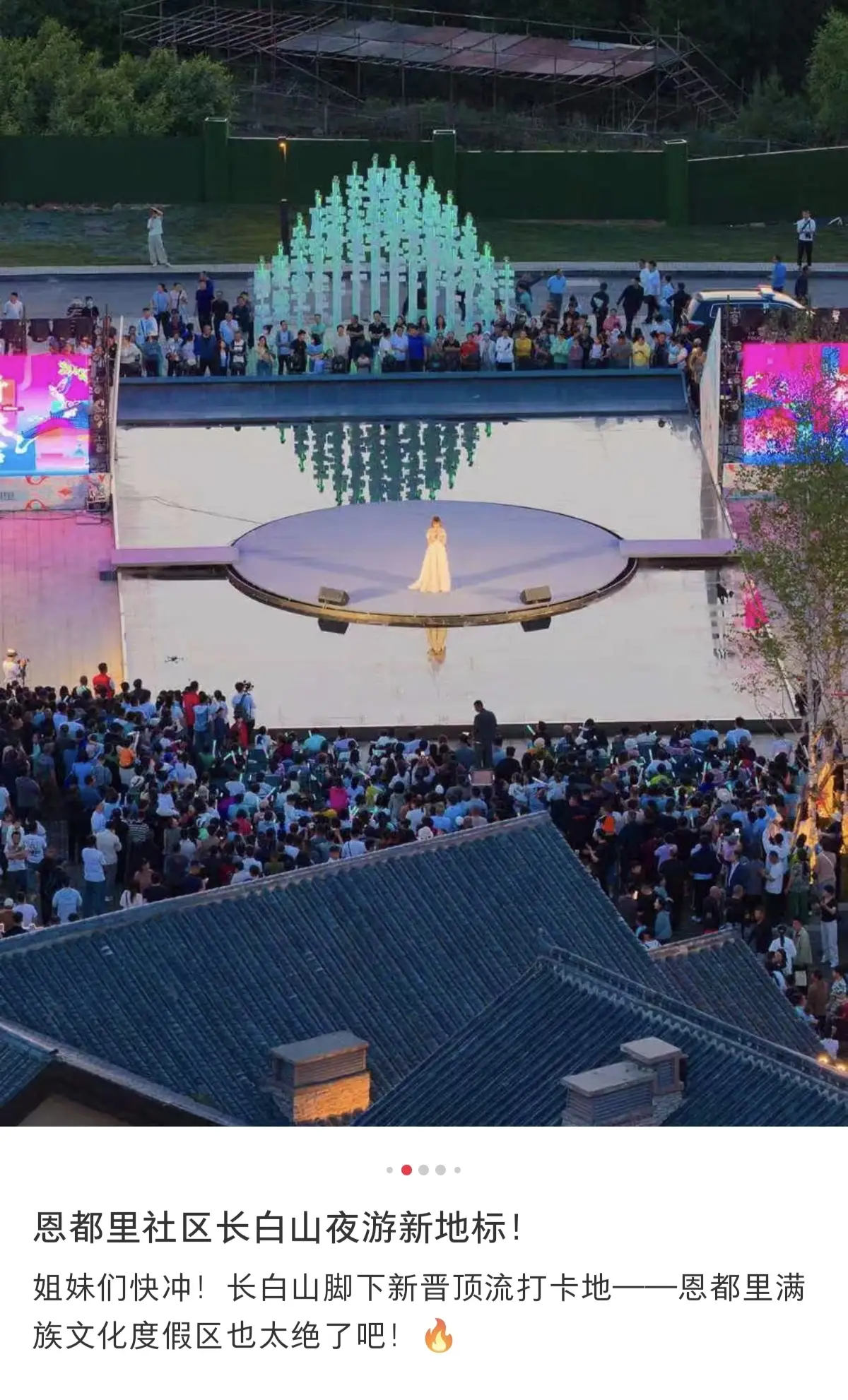 近期,位于长白山脚的二道白河镇迎来了一处名为恩都里的休闲度假商旅社区的新鲜面孔,该社区一经开放便迅速崛起为当地的网红聚集地,以及文化旅游消费的新焦点。在开业之夜,该地便吸引了超过万名游客前来观光。