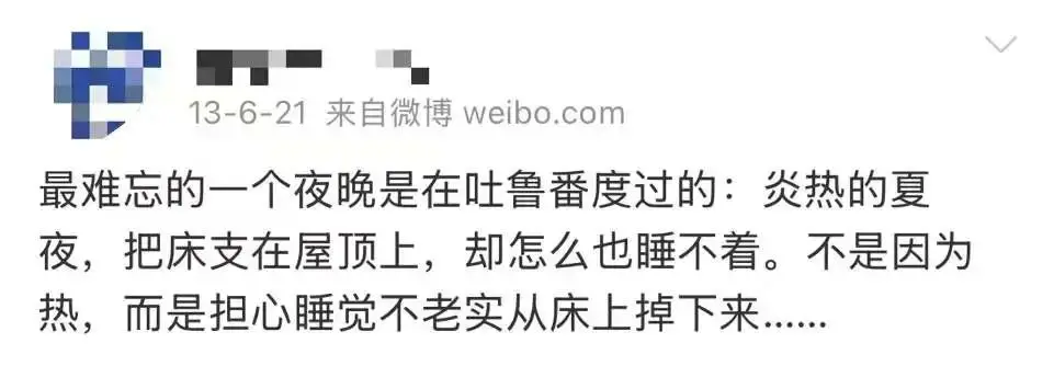 我是吐鲁番人,外出求学时,有一次觉得房间内过于闷热,便将物品搬至屋顶过夜。翌日归家,室友见到我,惊讶地说:“兄弟,你好像胖了,是不是被蚊子咬的?”