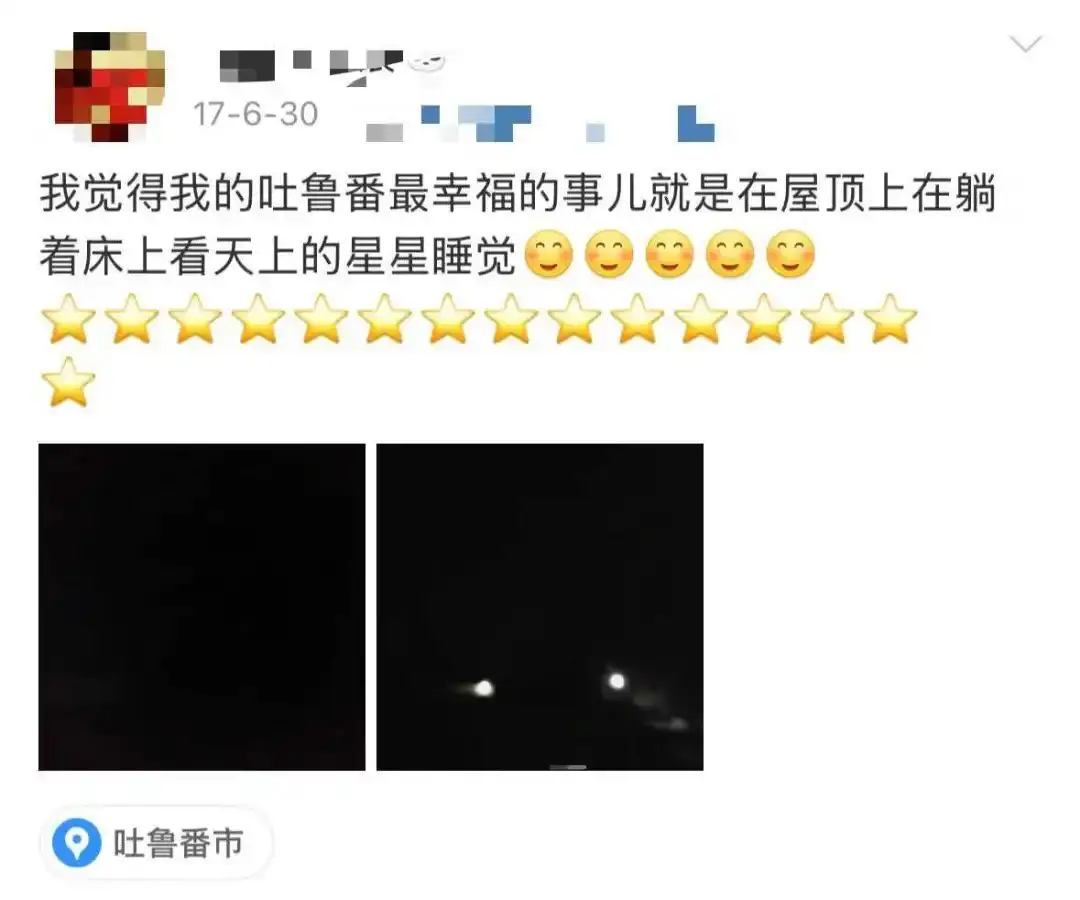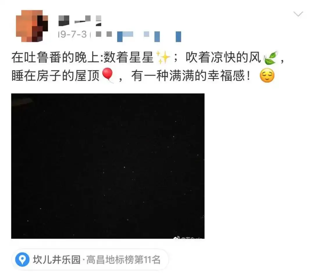 在吐鲁番的屋顶之上,我曾度过人生中最为舒心的一个夜晚。干爽的凉风恰到好处地拂过,尽管白天气温高达40度以上,热得连手机都难以操作,但夜晚的气温却降至20多度。