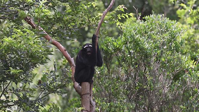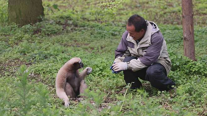 记者观察到,在云南野生动物园天鹅湖中央的小岛上,上演着一段既有趣又温馨的场景。据云南野生动物园的工作人员透露,岛上居住的两只白眉长臂猿在发生争执时,保育员会介入调解。除了负责日常的饲养和照料,保育员们还非常重视与长臂猿培养深厚的情感纽带。他们时常抽出时间陪伴长臂猿嬉戏,通过简单的游戏活动,帮助长臂猿提升体能和智力。保育员会将食物藏匿于特定区域,以此诱导长臂猿去搜寻,从而唤起它们的探求兴趣。在此过程中,长臂猿与保育员之间的信赖感逐步增强,它们会主动走向保育员,有时还会轻轻拽住保育员的衣角,呈现出一种亲密无间的情谊。
