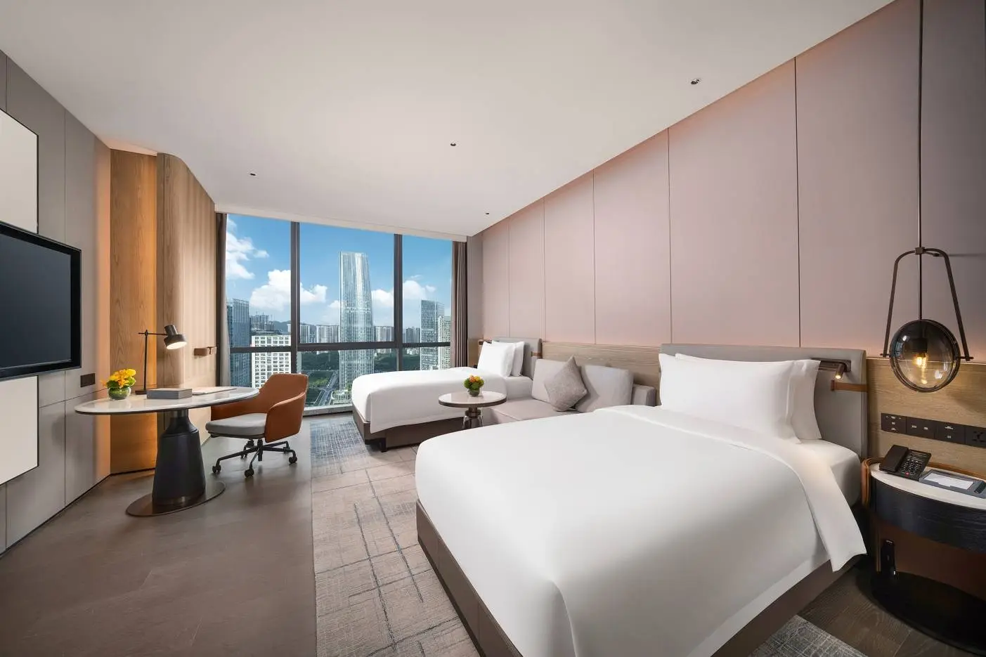 这家酒店设有286间客房与套房,每一间都配备了先进的设施和具有品牌特色的器具,诸如浴缸、65英寸的高清电视、电动智能马桶以及汇庭芳品牌的床上用品等。其装饰风格既大方又典雅,完美地展现了45至230平米宽敞空间的美感。客房内设有站立式书桌,让客人能够体验站立办公的新方式,而床与沙发之间的距离巧妙地改变了传统酒店的观影体验。每一个细节都体现了对人性化设计的重视。