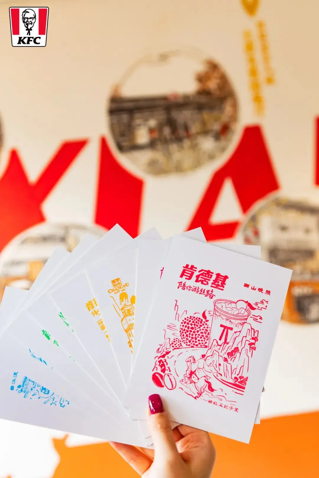 从西安的唐诗韵味到敦煌的壁画仙子,从兰州的汉简古风到新疆的丝绸之路驼铃声,肯德基以美食为桥梁,巧妙地将丝绸之路文化融入了现代消费空间。在这场“舌尖上的丝路之旅”中,那些沉睡的文物以轻巧、互动的方式“跃出展柜”,变得真实可触;祖国的壮丽河山化作明信片上的美丽风景,既可观赏又可收藏,还能随身携带。