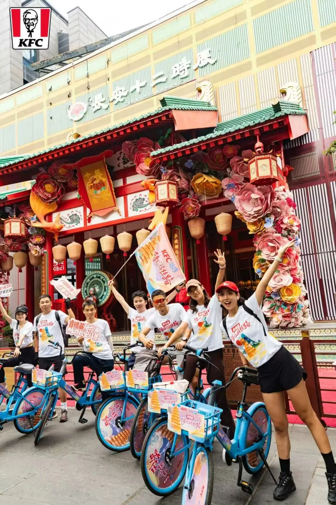 陕西肯德基携手哈啰单车开展夏日合作,顾客只需扫描活动餐厅及景区的单页二维码,便可轻松获得肯悦咖啡和哈啰骑行券。经过精心装饰的主题单车,犹如一幅流动的文化长卷,在斑斓的风景中熠熠生辉。漫步在底蕴深厚的陕西,人们在骑行中体验美景与美食的完美融合。骑行在陕西的夏日街头,单车与快餐相伴,景区与街区交织,肯德基成为了你的最佳“骑行伴侣”。