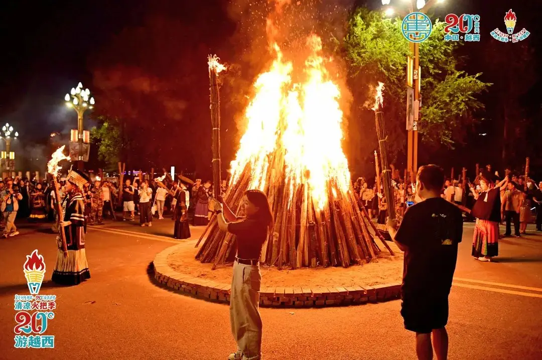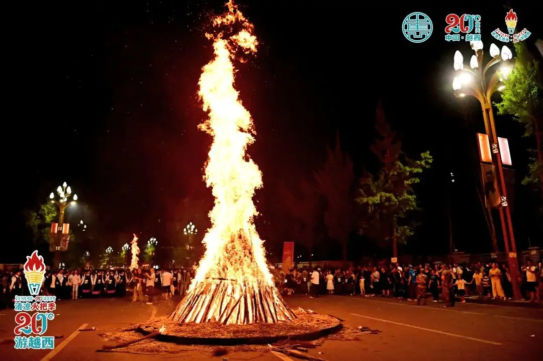 此乃凉山州越西县火把节庆典之地,彝族民众深信火把象征着光明与期盼,点燃火把之举,意在将昔日的厄运彻底驱散……
