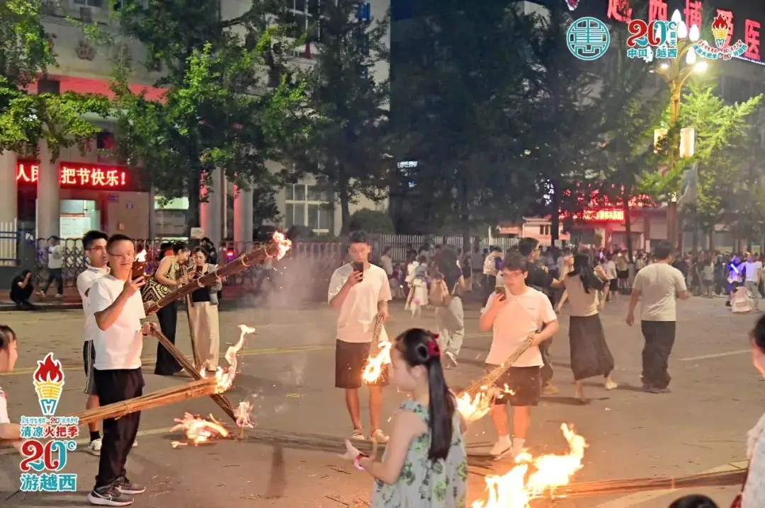 7月12日夜晚,越西县举办的“星舞火把”活动与直播点火仪式在文昌大道隆重启动,吸引了众多市民以及游客的热情参与,大家一同沉浸在彝族火把节的独特风情之中。