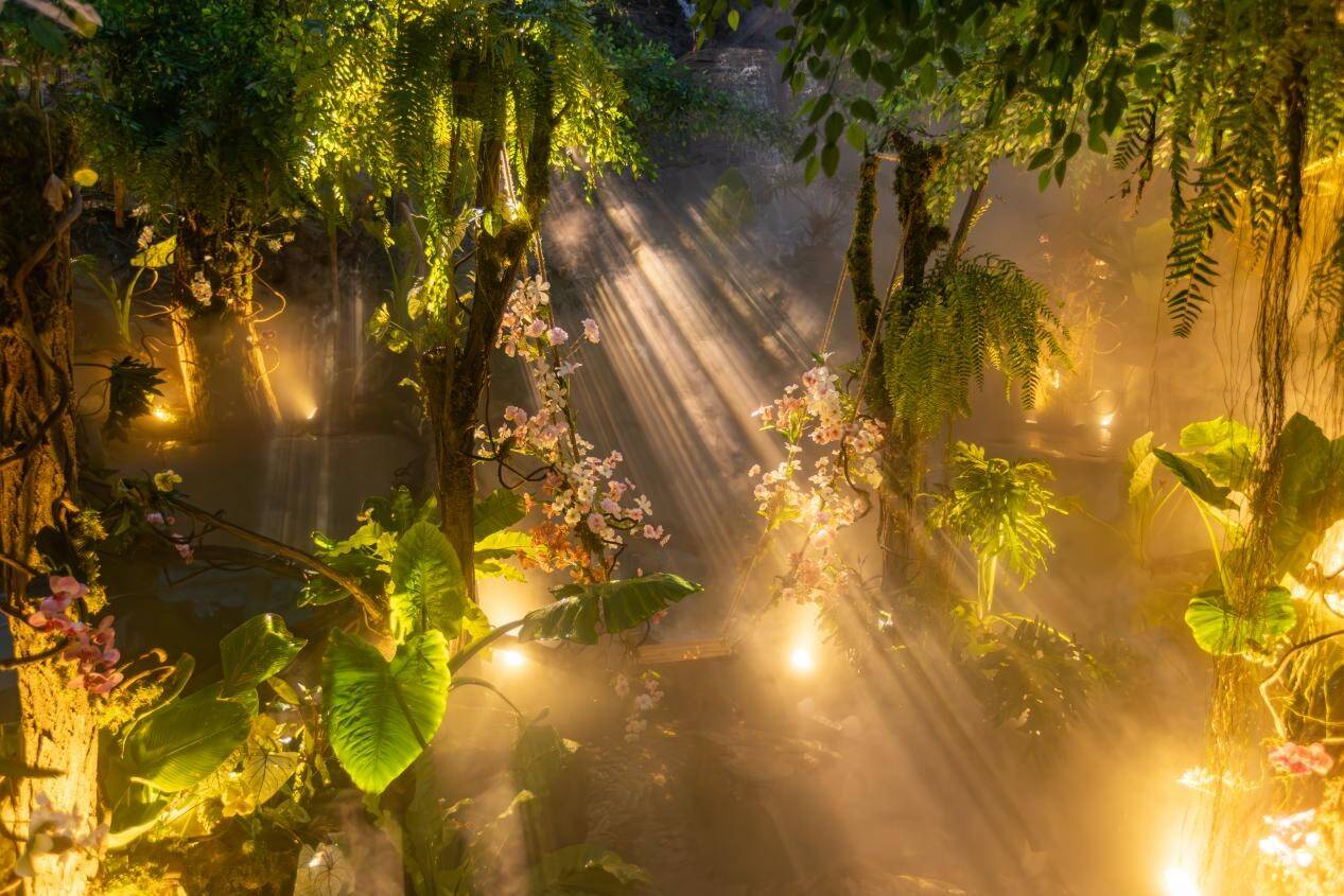 这个暑假,红叶柿岩夜游再次升级,柿岩仙村带着云雾缭绕、绿意盎然、流水潺潺的景象全新回归:芭蕉叶下,一片清凉,全新的景观“瑶池仙瀑”惊艳呈现,美妙的光影交织环绕,百年古村焕然一新,变成了神秘仙境,重现了人间的美好。