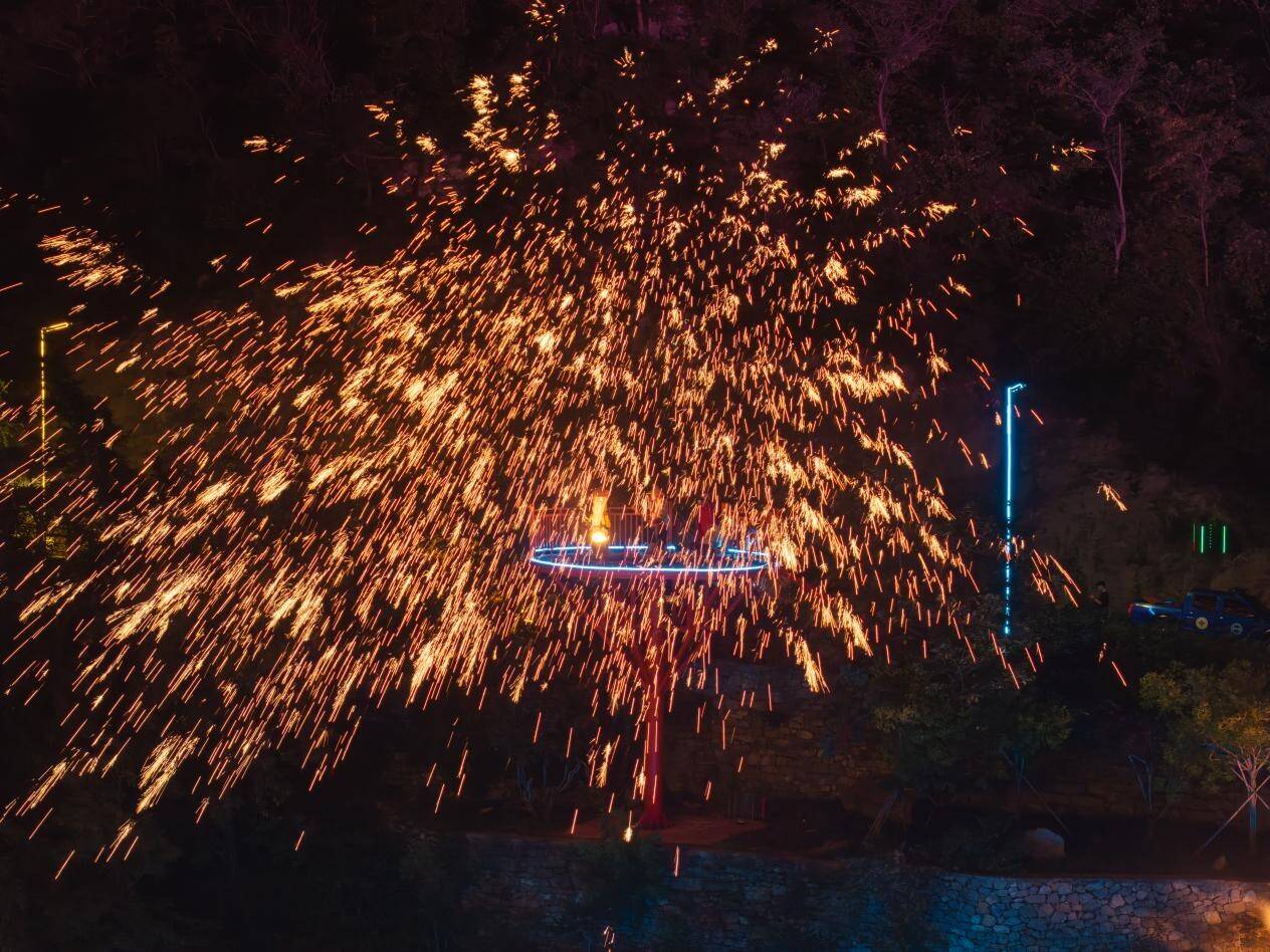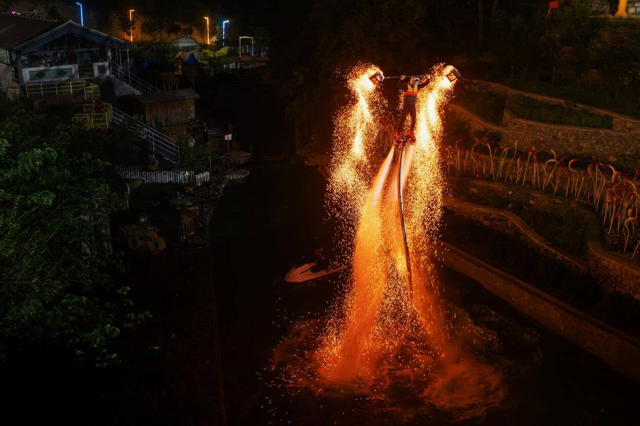 仙村沉浸在戏剧的欢乐之中,狂欢气氛愈发浓厚,精彩的演出接连不断。在7月11日至8月31日的整个暑期期间,红叶柿岩推出了为期7周的五大主题活动,将整个假期串联起来,每周的狂欢活动都独具特色,绝不雷同。鲁菜之魂与东南亚美食在此交汇,热带雨林的神秘之地,尽享舌尖上的盛宴;魔术周将戏法和幻术巧妙融合,捕捉你每一个惊叹的瞬间;飞天火壶、非遗打铁花、鱼灯舞、陶琉技艺,非遗周的传统技艺在柿岩夜空中熠熠生辉;音浪激荡,踏水嬉戏,泼水狂欢,声光派对升维体验,无尽的快乐已为你精心准备!喜剧周盛宴开启,欢笑如潮水般涌来,即兴喜剧的互动中,观众们笑逐颜开,炎炎夏日似乎也随之消散,留下的唯有满心的喜悦和欢乐的波涛。