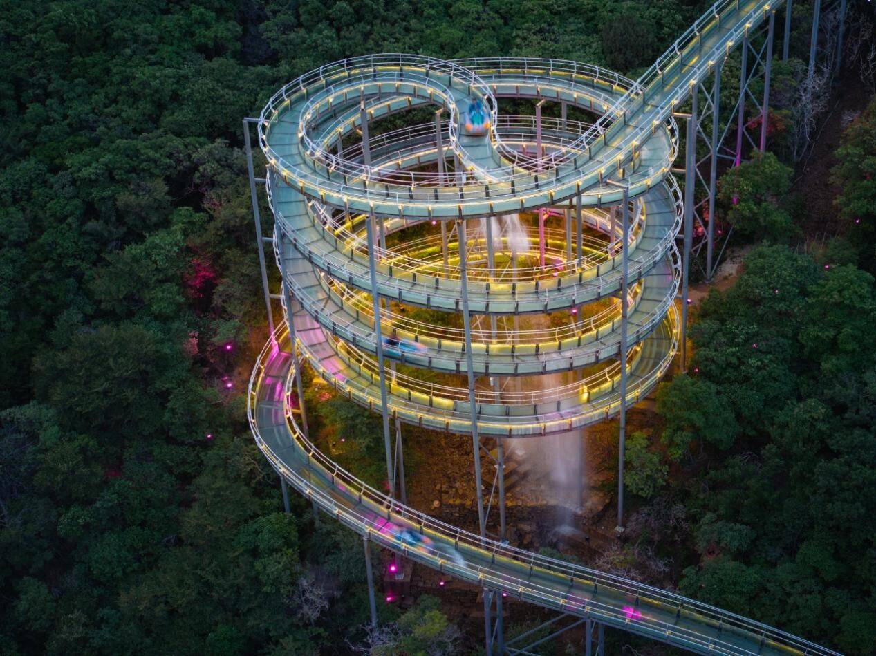 夏日来临,柿岩山谷转入了清凉状态,漂流活动激情四溢,波涛汹涌,自然散发出凉爽的气息;山地滑车紧贴地面疾驰,乘风破浪,体验速度带来的极致畅快;卡皮巴拉理想国让人心生向往,与网红水豚亲密接触,享受温馨的亲子时光。夕阳西下,天边响起美妙的乐章。在“云上的毕业季”专用场地,我们聆听乐队在余晖中奏响青春的乐章,一同享受青春与自由的盛宴。